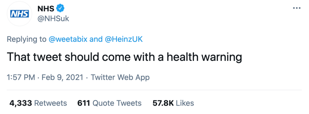 Never before have I seen a tweet receive SO many branded replies, with blue light services and even the NHS jumping on the bandwagon. Who would have thought in these *uncertain times* that what unified us would be the unquestionable agreement that beans do not belong on Weetabix.