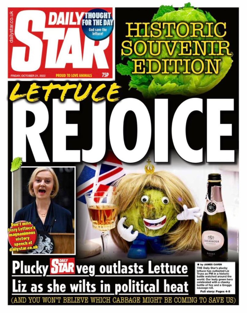 Not only did the stream rack up hundreds of thousands of viewers and generated a lot of social media noise, it also attracted a tonne of press attention too. When Truss left office 6 days later, a lot of us thought back to the lettuce and its status. If you checked into the live feed that day, you’d have seen the vegetable donned in full celebratory gear. The Daily Mail even released a souvenir paper the day after. All good fun and undeniably the laugh we all needed in these turbulent times.