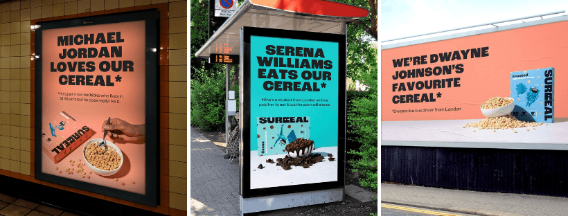 We looove a little risqué marketing on this blog (as long as it’s done tactfully and not tack-ily). A campaign by Surreal Cereal to suggest a number celebrity reviews for their product, but that were actually from regular people with famous names, actually, in my opinion, was more attention-grabbing than actual campaigns with actual celebrity endorsements! Small fishes in big ponds have to think big to grow, and when you’re up against the likes of Kellogs and Nestle, brands with strong and long reputations, I think it pays to take risks.